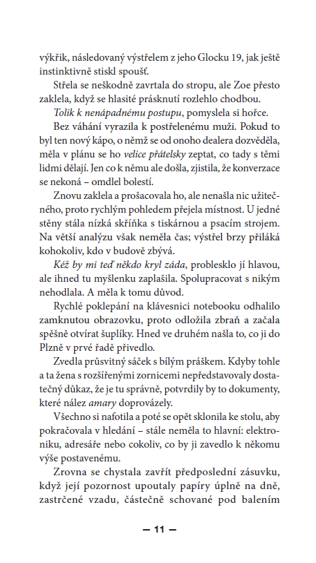 Kniha má 385 stran a pevnou vazbu. U mě k ní dostaneš jako bonus dvě originální záložky, k tomu dodatečný příběh o 50 stranách, psaný z pohledu oběti (k dispozici jako PDF a EPUB) a podpis s věnováním.