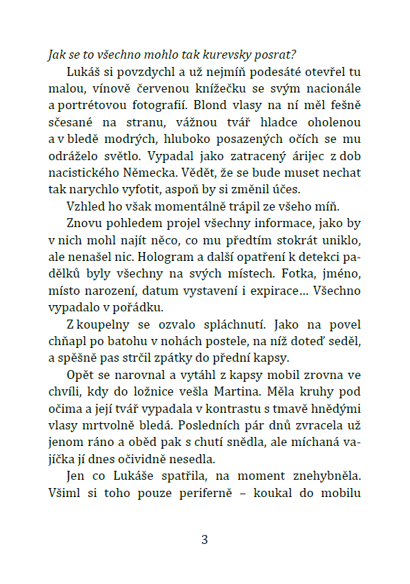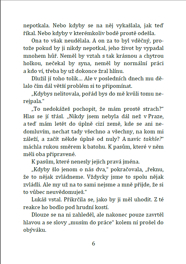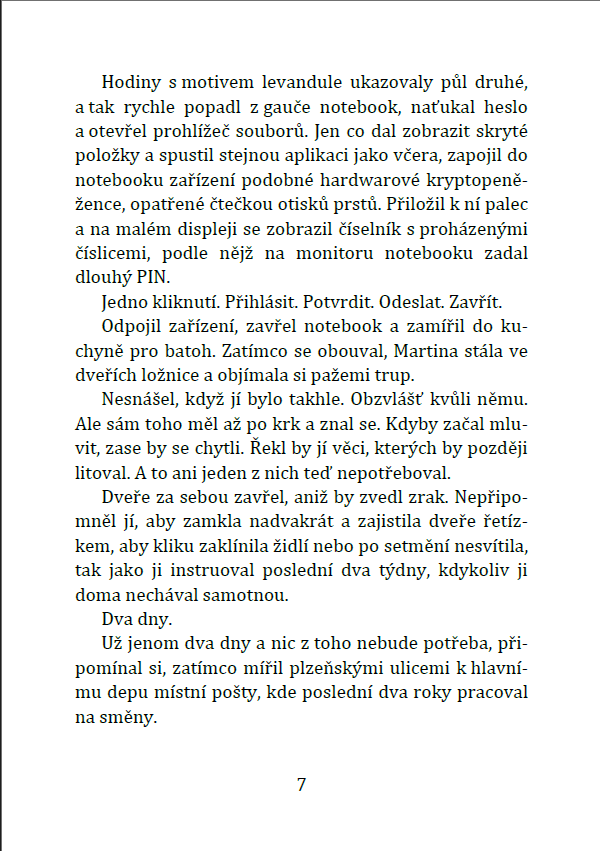 Pošlu ti jenom novelu a potom dva seznamovací maily. Pak už budu psát jen občas, když bude něco nového – očekávám frekvenci tak jednou, v případě rušnějšího období dvakrát do měsíce – a ty budeš mít všechny novinky samozřejmě s předstihem.