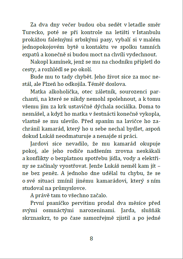 Plzeňský rodák Lukáš za svůj život napáchal spoustu špatností – pohyboval se hluboko za hranou zákona a zapletl se s nebezpečnými lidmi. Teď nemá jinou možnost než prchnout i se svou těhotnou přítelkyní ze země. Jenže Serpent nezapomíná. A Lukáš to velice brzo zjistí – tím nejhorším možným způsobem.